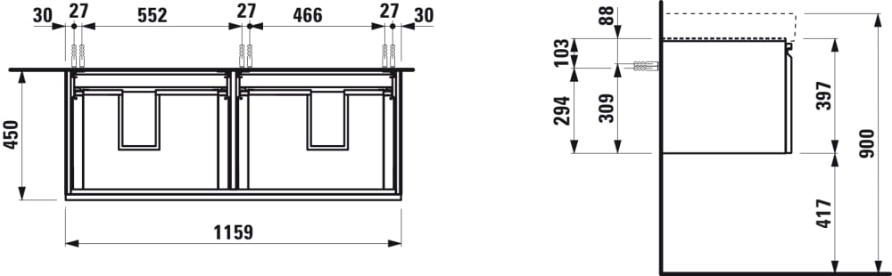 Skrinka pod umývadlo Laufen PRO S 116x45x39,5 cm, s 2 zásuvkami