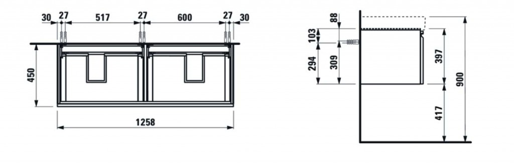 Dvojumývadlo do nábytku Laufen PRO S 1300×465 mm, bez otvoru pre batériu, biela LCC