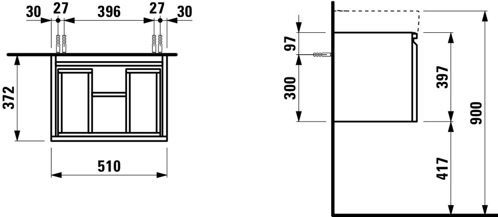 Skrinka pod umývadlo Laufen PRO S 126x45x39 cm, s 2 zásuvkami, biela