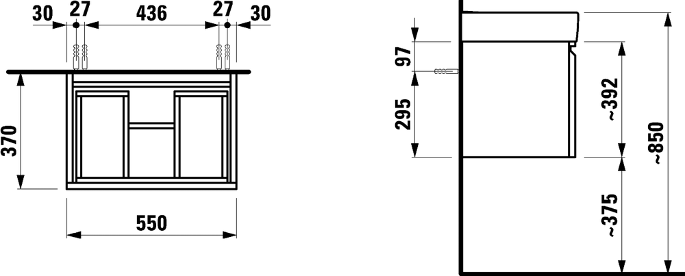 Skrinka pod umývadlo Laufen PRO S 55x37x39 cm, grafit