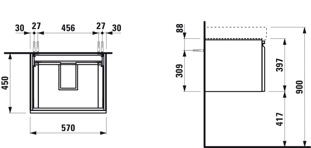 Skrinka pod umývadlo Laufen PRO S 81x45x39 cm, so zásuvkou, grafit