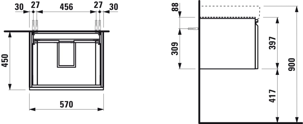 Skrinka pod umývadlo Laufen PRO S 57x45x39 cm, so zásuvkou, biela