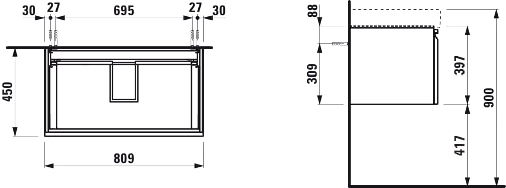 Skrinka pod umývadlo Laufen PRO S 81x45x39 cm, so zásuvkou, grafit