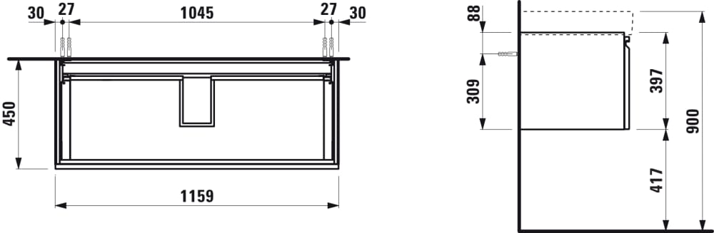 Skrinka pod umývadlo Laufen PRO S 116x45x39,5 cm, s 2 zásuvkami, grafit