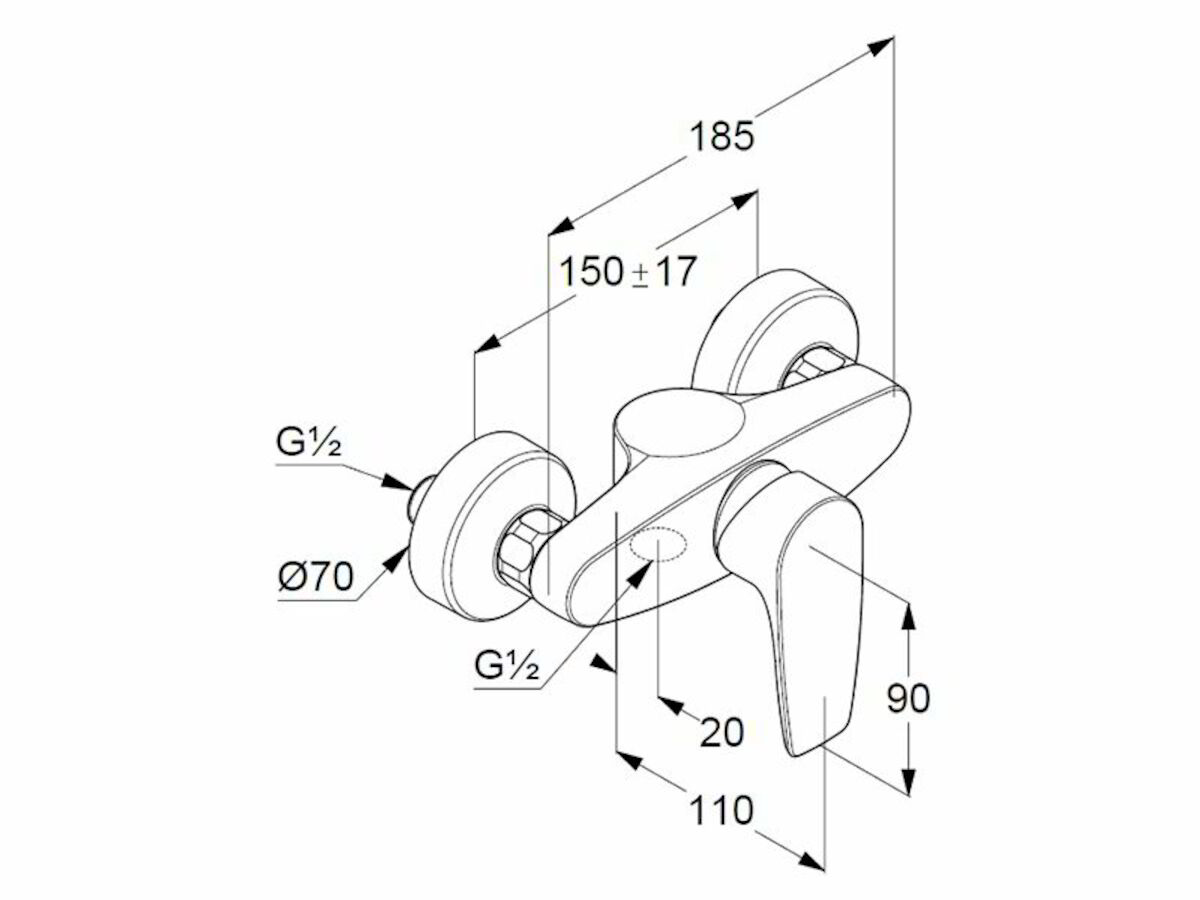 Páková nástenná sprchová batéria bez sprchového setu v chrómovom prevedenie.