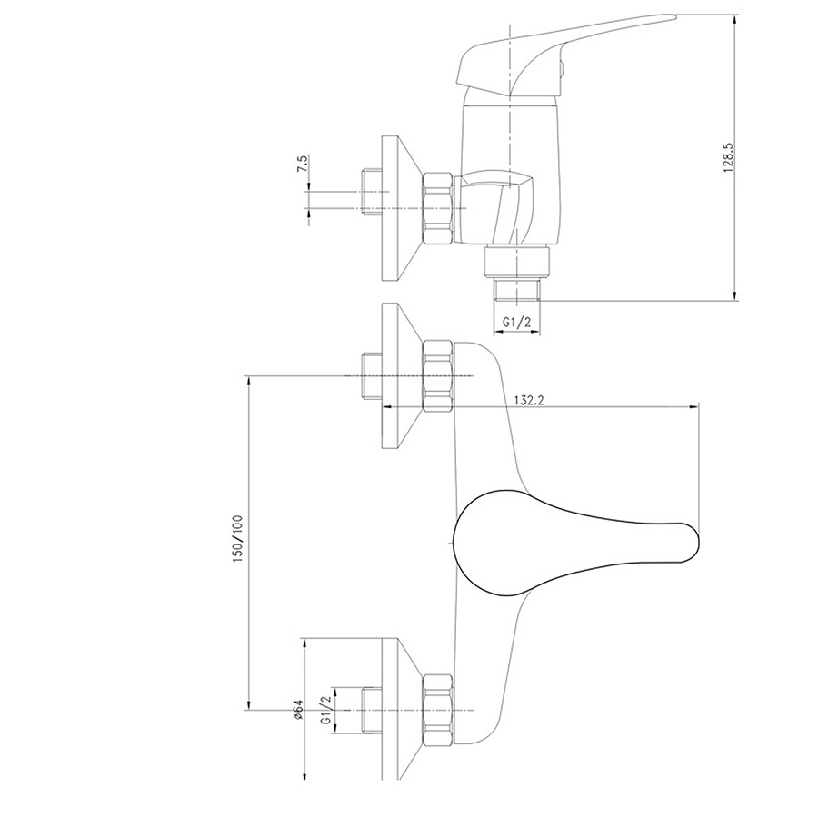 Táto sprchová nástenná batéria pochádza zo série vodovodných batérií Lila, ktorá predstavuje cenovo nenáročné riešenie pri zachovaní spoľahlivosti a kvality povrchovej úpravy. Nástenné batérie dodávame v rozstupe 100 i 150 mm.