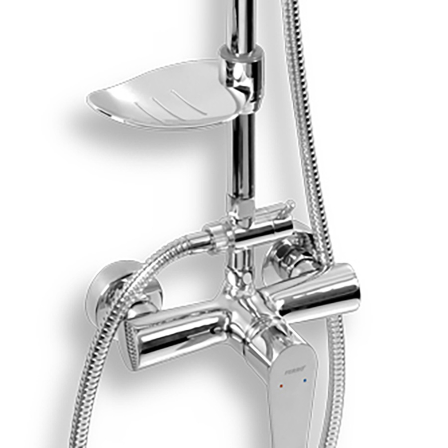 Prvotriedne chrómové prevedenie. Set obsahuje nástennú sprchovú batériu s vrchným vývodom a rozostupom 150 mm s kvalitnou a odolnou, keramickou kartušou 35 mm s 5 ročnou zárukou, hadicu 150 cm, hlavovú sprchu s priemerom 200 mm, ručnú sprchu a posuvný jazdec s držiakom ručnej sprchy. Set spolu s batériou má výšku 1100 mm. Umožňuje nastaviť aj odchýlenie vrchného úchytu od steny v rozmedzí 60 – 80 mm.