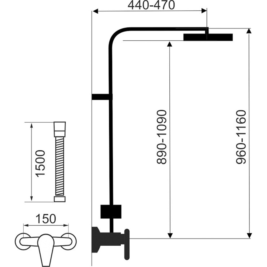 Prvotriedne chrómové prevedenie. Set obsahuje nástennú sprchovú termostatickú batériu AQUASAVE 2862/1,0 s vrchným vývodom a rozostupom 150 mm s kvalitnou a odolnou, termostatickou kartušou a 7 ročnou zárukou, hadicu 150 cm, hlavovú sprchu s rozmerom 280×280 mm, 3-polohovú ručnú sprchu a posuvný jazdec s držiakom ručnej sprchy. Výška setu je nastaviteľná 960 – 1160 mm. Umožňuje nastaviť odchýlenie vrchného úchytu od steny v rozmedzí 50 – 80 mm.