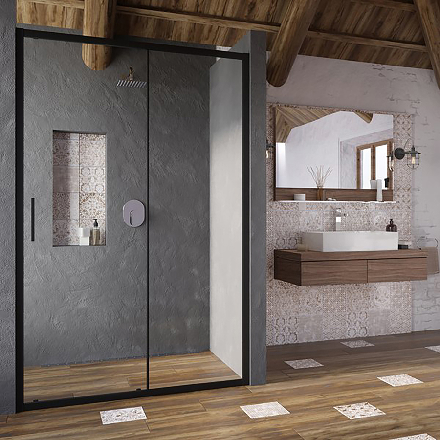 Sprchové dvere Ravak BLIX Slim BLSRV2K 1200 mm, čierna/sklo Transparent 6 mm