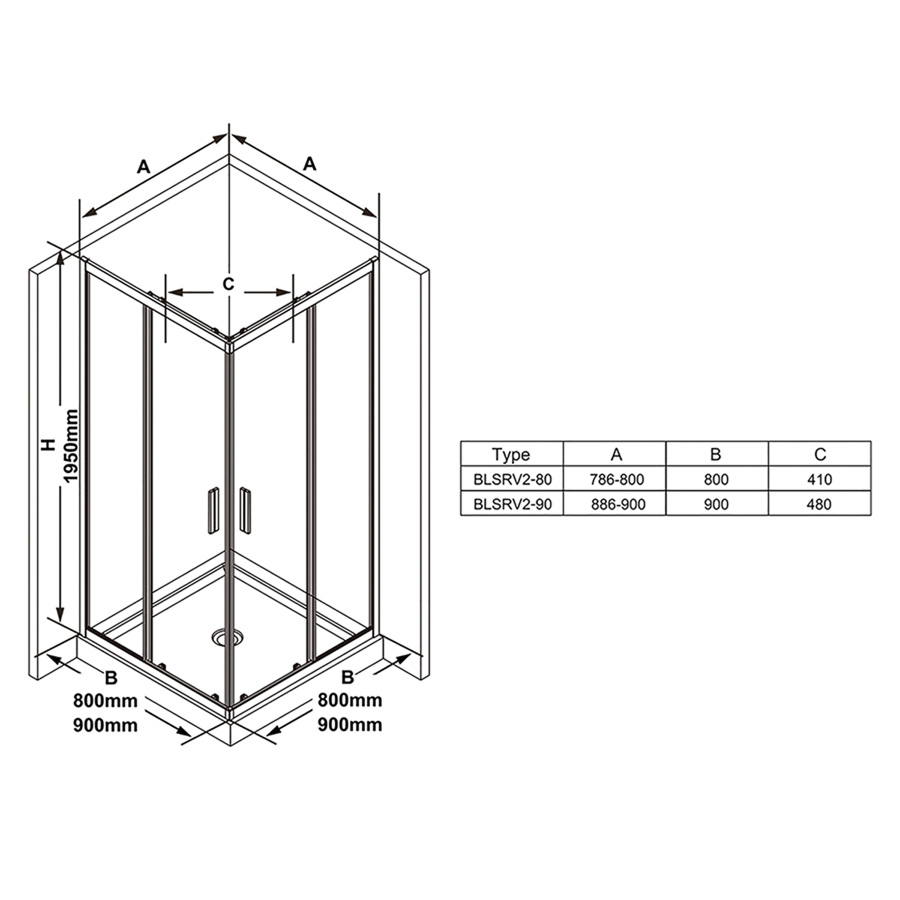 Sprchový kút 1/2 RAVAK Blix Slim BLSRV2K 900×1950 mm, lesklý chróm/ sklo Transparent