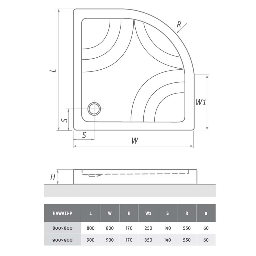 Štvrťkruhová samonosná sprchovacia vanička z koextrudovanej škrupiny s PU nosičom, to je HAWAII-P. Vďaka tomu, že je vanička samonosná sa veľmi ľahko inštaluje, čo je určite obrovská výhoda. Najviac vás ale zaujme jej bezkonkurenčne nízka cena.