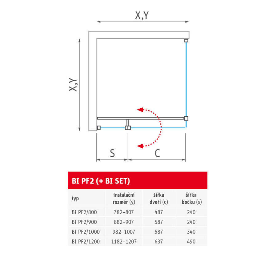 Jednokrídlové sprchové dvere BI PF2 1200/2000, čierny elox/číre sklo
