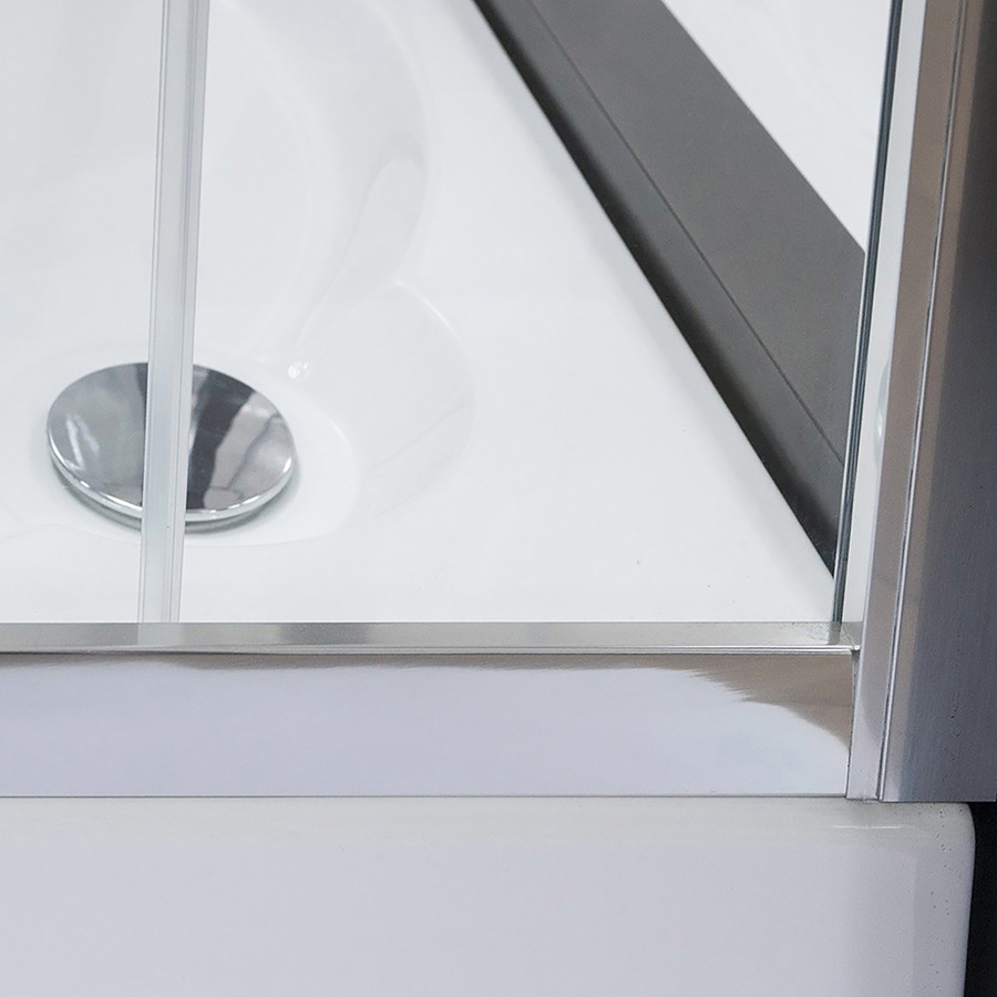 „Masívne držadla z leštenej nehrdzavejúcej oceli“ />Profily sprchových dverí sú vyrobené z hliníka v prevedení Brillant a výplne bezpečnostných skiel ponúkame vo variante Transparent (číre sklo). Odolné dvojité horné a spodné pojazdy zaisťujú hladký pohyb dverí. Dvere navyše disponujú výklopným systémom spodnej časti pre ľahkú údržbu, čo už ocenil nejeden zákazník. Masívne madlo z leštenej nehrdzavejúcej ocele podčiarkuje decentný dizajn dverí.