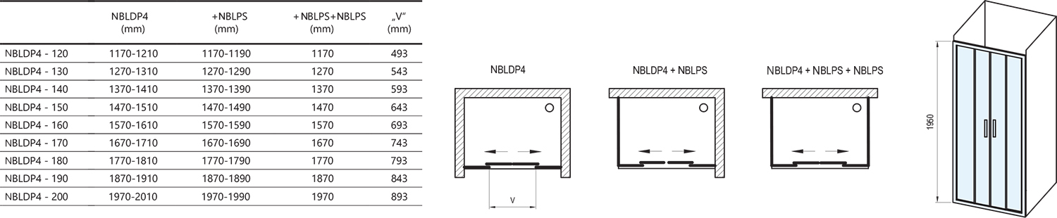 Kombináciou s dvoma pevnými stenami typu NBLPS, vytvoríte sprchový kút v tvare „U“.