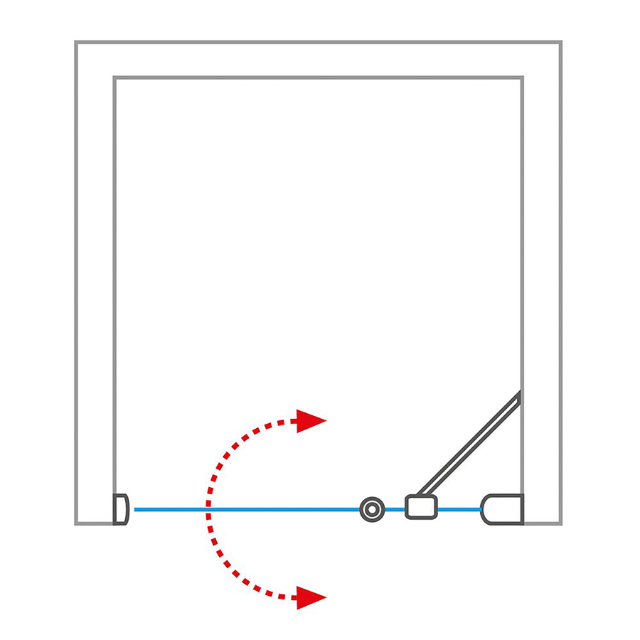 Vďaka vačkovému mechanizmu otvárania sa dvere jednoducho dostanú cez prahovú lištu a vďaka pohyblivým profilom možno sprchové dvere otvárať obojstranne, čiže dovnútra aj von. Magnetické tesnenie medzi profilom a dverami, a tiež tesniace silikónový zástavku na spodnej hrane dverí napomáhajú perfektnému utesnenie. Už neunikne ani kvapka vody! Elegantná teleskopická vzpera upevnená medzi pevnou časťou dverí a stenou zaisťuje dokonalú stabilitu a tuhosť sprchovacieho kúta. Vyzdvihnúť musíme aj kvalitné držadlo z brúseného hliníka, ktoré podčiarkuje krásu celých dverí.
