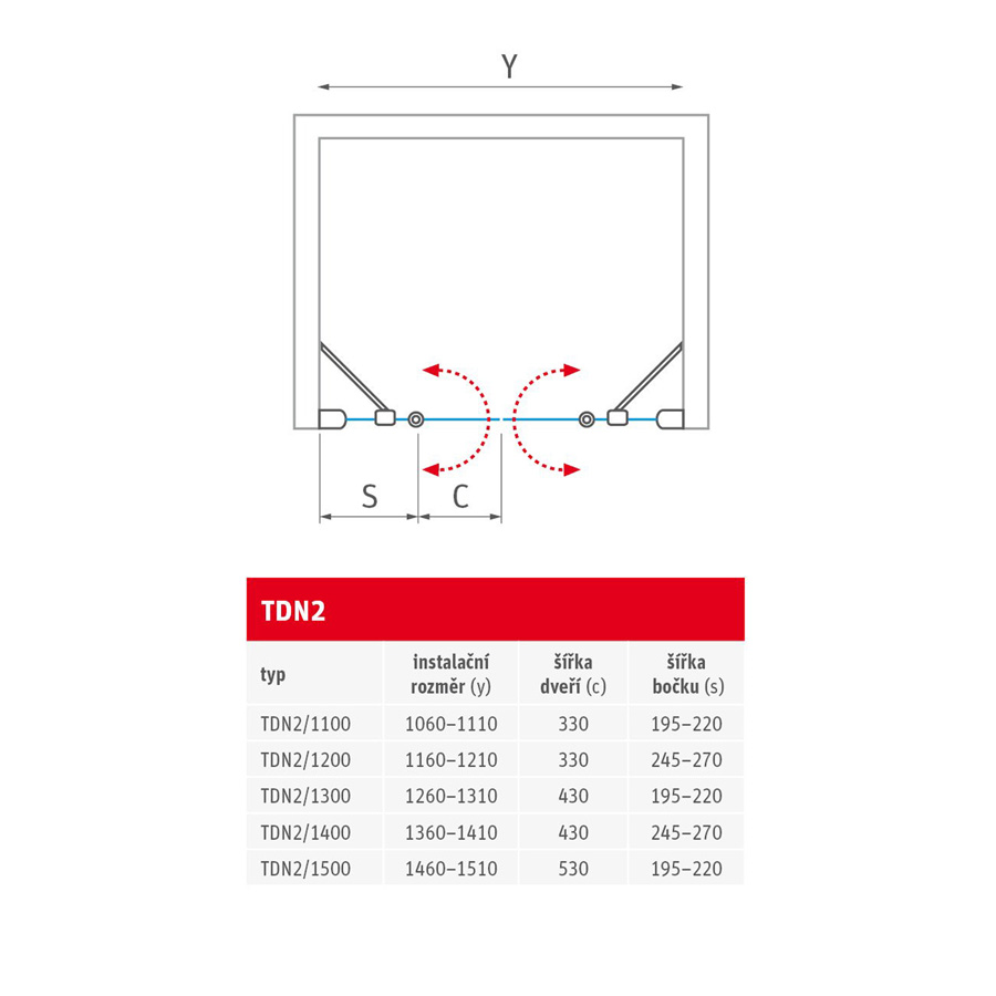 TDN2 sú dvojkrídlové sprchové dvere na inštaláciu do niky. Tieto sprchové dvere môžu byť veľmi pekným riešením pre vašu kúpeľňu.