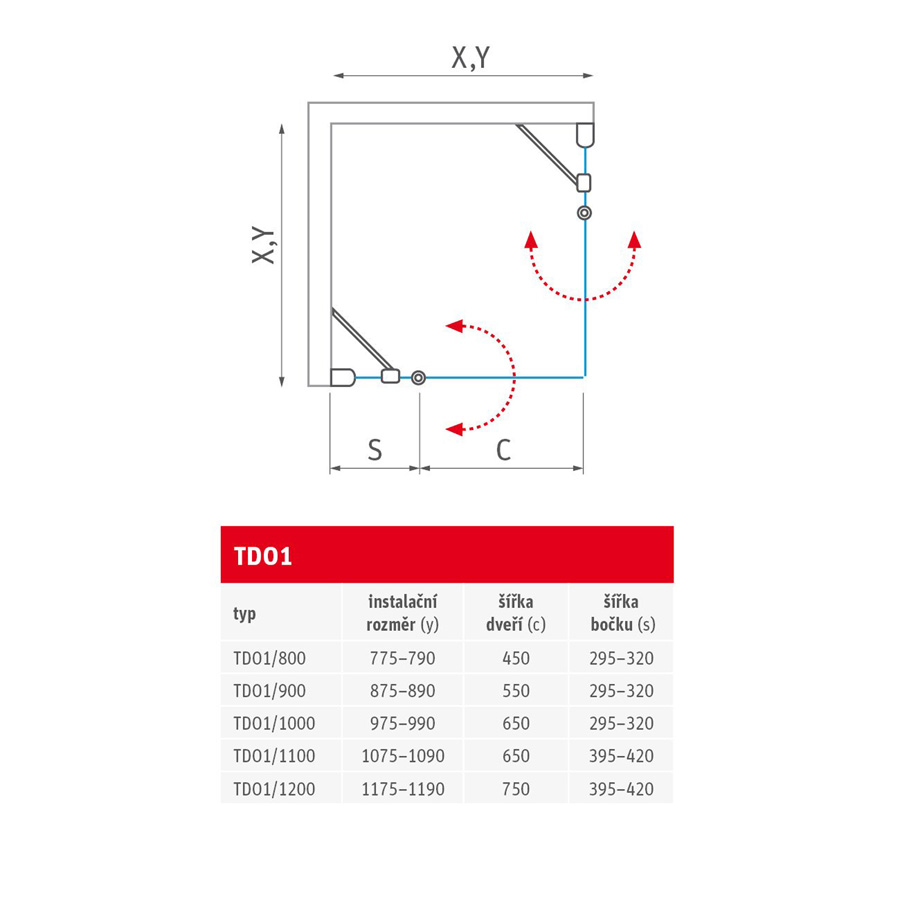 • Pre zostavenie štvorcového sprchového kúta je potrebné objednať sprchové dvere TDO1 2x!!!