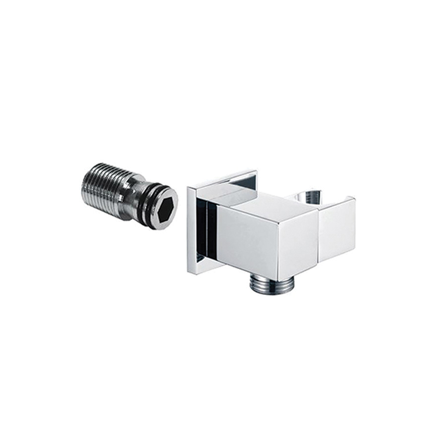 Stenový vývod s držiakom na sprchu SOLID, hranatý, pochrómovaná mosadz