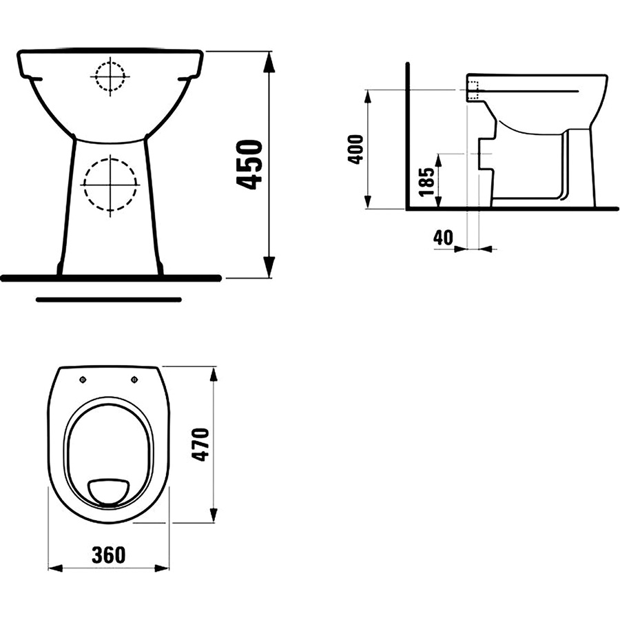 samostatne stojace WC, ploché splachovanie,vodorovný odpad,otvorený splachovací kruh