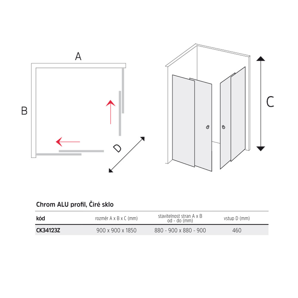 Sprchovací kút je osadený posuvnými dverami, ktoré majú ložiskové pojazdy s excentrickým usadením (možnosť perfektného nastavenia).