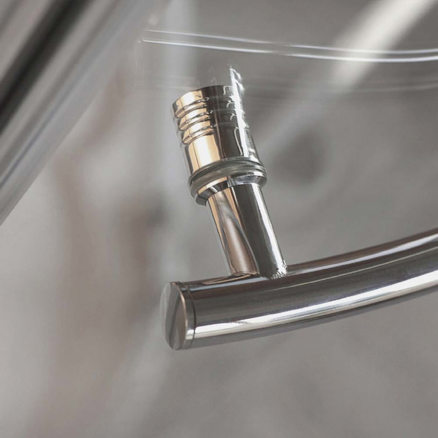 „Otočné dverné pánty v úprave Chróm“ />Môžete si vybrať z dvoch rozmerov sprchovacieho kúta: 80 cm a 90 cm. Jednokrídlové otváracie dvere sú zavesené na prvotriednych pántoch, v povrchovej úprave Chróm, vďaka čomu vám budú dlho spoľahlivo slúžiť.