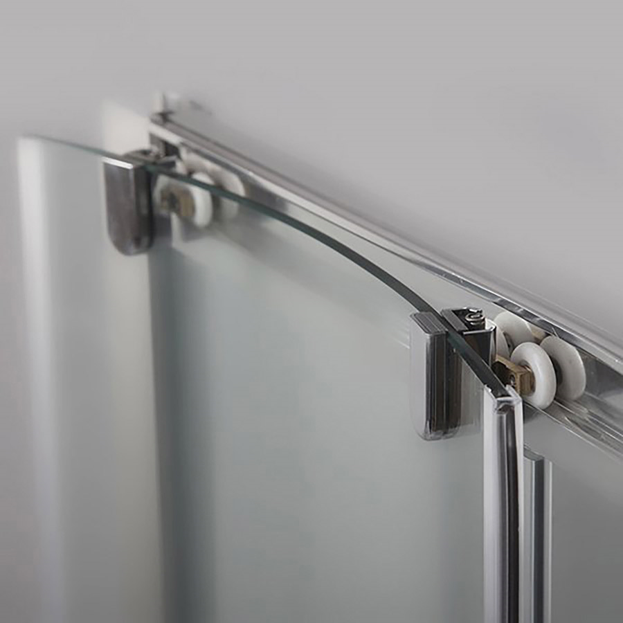 „Tesnenie posuvných sprchových dverí“ />Sprchový kút disponuje vysoko kvalitnými ložiskovými pojazdy, ktoré majú v hornej čiasti dvojitú rolnu (2 kolieska na pojazdu). To zaisťuje väčší tuhosť a odolnosť sprchového kúta. Spodnú čiast dverí môžete odklopiť, čo umožňuje rychlú a jednoduchú údržbu. Použili sme bezpečnostné sklo s hrúbkou 6 mm, ktoré je tak pevné, že nepotrebuje vnutorné zvislé profily ako oporu. Medzi sprchovými dverami a pevným bočkom nájdete iba priesvitné tesnenie, vďaka ktorému celý sprchový kút pôsobí veľmi elegantne.