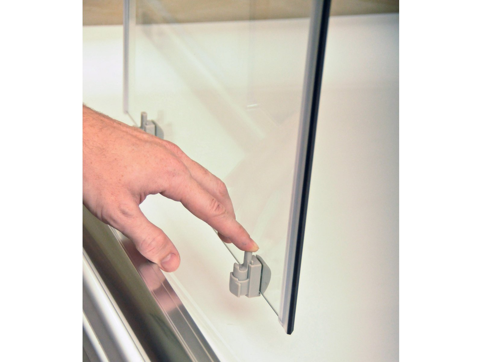 Výrobok tvoria dva pevné rovné diely a dva ohýbané diely ako posuvné dvere.