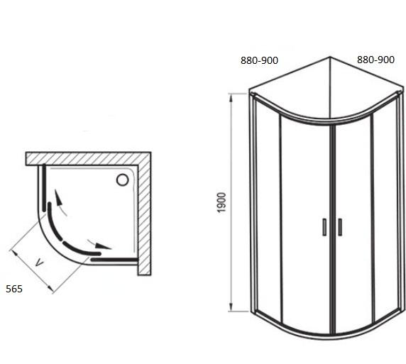Montuje sa do obloženého rohu kúpeľne na vaničku Ravak Elipso Pro Flat alebo priamo na podlahu so zabudovaným odtokovým žľabom či podlahovým vpustom.