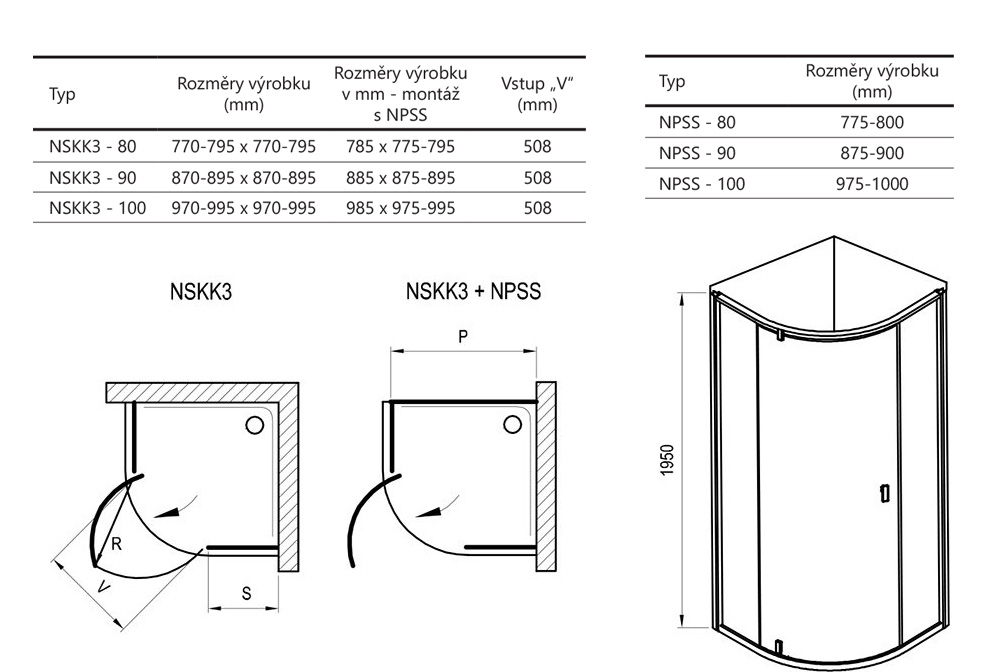 Výrobok tvoria dva pevné rovné diely a jeden ohýbaný diel ako otočné dvere. Otočením výrobku o 180° získate ľavý alebo pravý variant otvárania dverí. Montuje sa do obloženého rohu kúpeľne na vaničky Ravak Elipso Pro alebo priamo na podlahu so zabudovaným odtokovým žľabom či podlahovým vpustom. Ak nedisponujete vymurovaným rohom, priečku môžete nahradiť pevnou stenou typu NPSS. Pomocou nastavovacích profilov NNPS sa výrobok vie prispôsobiť stavebnému otvoru až o 4 cm na každej strane.
