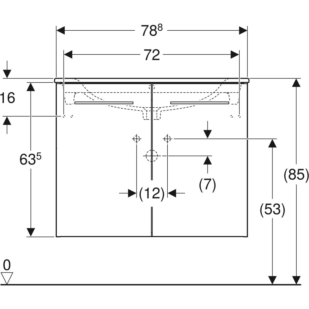 Súprava nábytkového umývadla Geberit Selnova Square s úzkym okrajom, so skrinkou pod umývadlo, dve dvierka