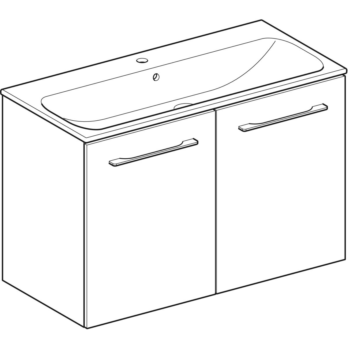Súprava nábytkového umývadla Geberit Selnova Square s úzkym okrajom, so skrinkou pod umývadlo, dve dvierka