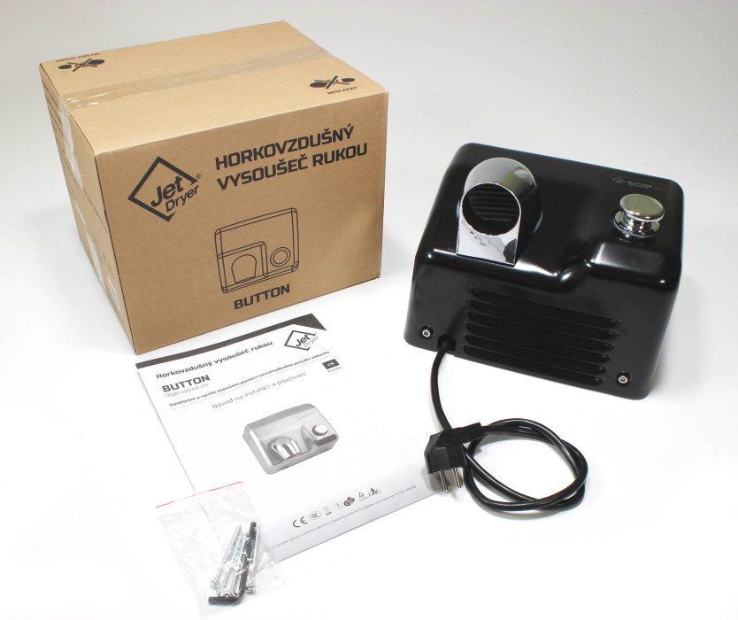 Telo sušiča Jet Dryer BUTTON je vyrobené zo silného a veľmi húževnatého kovu. Môžete si vybrať medzi prevedením z lakovaného kovu alebo nerezovej ocele. Kryt je fixovaný pomocou bezpečnostných skrutiek. Pod sušič nie je možné nič zasunúť a strhnúť ho zo steny.
