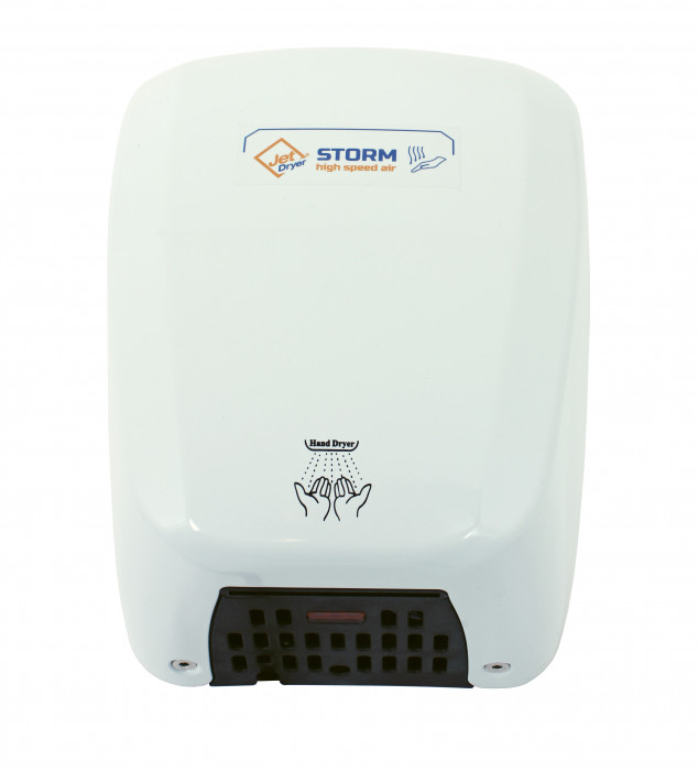 STORM predstavuje kombináciu kompaktných rozmerov teplovzdušných sušičov so sušiacou silou tryskových sušičov. Robustná kovová konštrukcia je vhodná aj do vysoko frekventovaných miest. Sušič stačí nainštalovať na stenu a zabudnúť, žiadne nákupy obrúskov, žiadne preplnené koše.