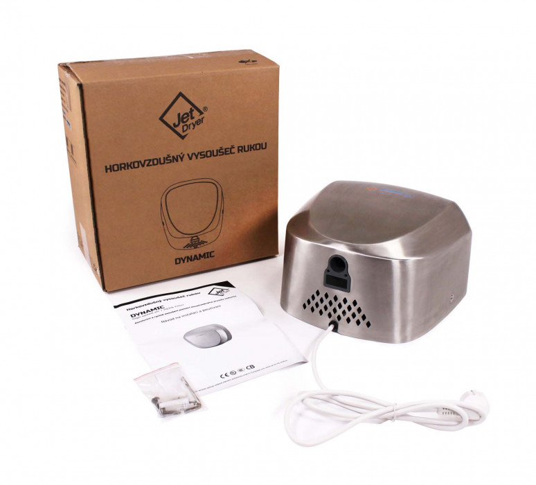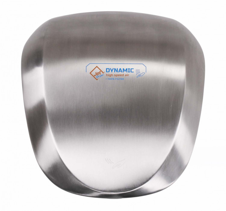 DYNAMIC je jediný sušič rúk z radu Jet Dryer vybavený HEPA filtrom. Silne dimenzovaný motor v priestrannom kovovom kryte predurčuje tento sušič do prevádzok s veľmi frekventovanou prevádzkou. Ohrev vzduchu sa spína automaticky podľa okolitej teploty.