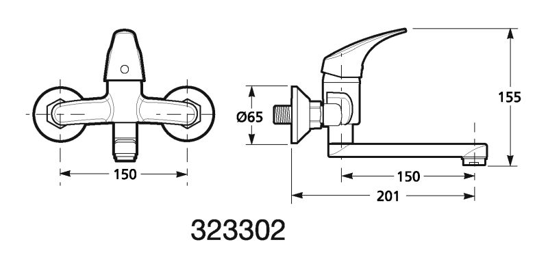 umývadlová nástenná páková batéria,ramienko 150mm,chróm