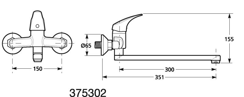 umývadlová nástenná páková batéria,ramienko-300mm,chróm