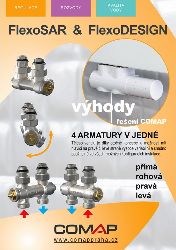 Comap FlexoDesign termostatický ventil stredový univerzálny BIELY 1/2 „x 3/4“ L234006001