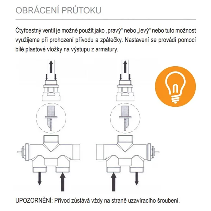 • Pripojenie termostatickej hlavice z pravej alebo z ľavej strany