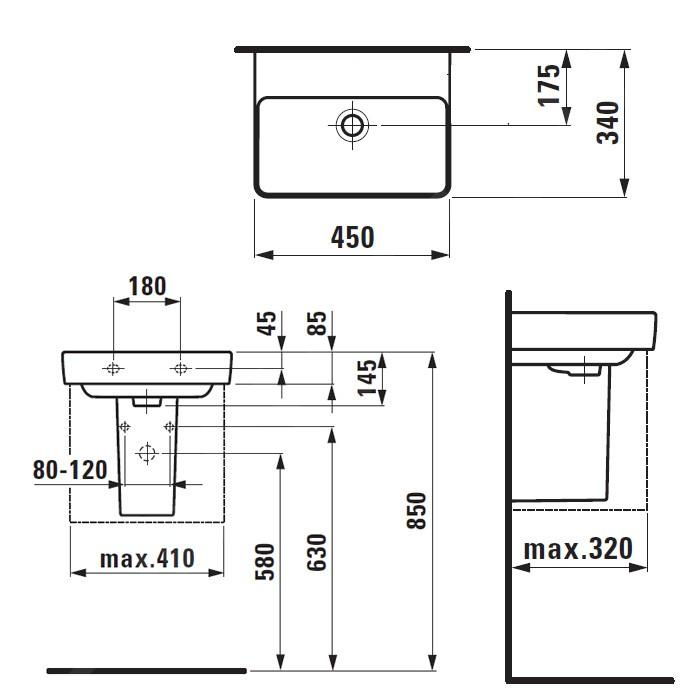 Domov Umývadlá Umývadielka Umývadielko Laufen PRO S 450×340 mm, bez otvoru pre batériu, biela