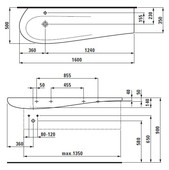 Domov Umývadlá Nábytkové umývadlá Umývadlo do nábytku Laufen Il BAGNO ALESSI One 1600×500 mm, 1 otvor pre batériu, stredový, biela