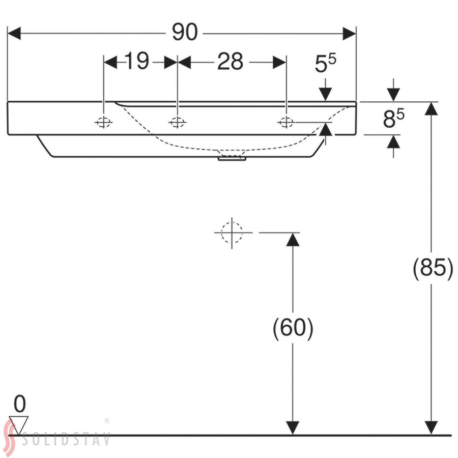 Umývadlo Geberit Xeno2: B=90cm, T=48cm, biela / KeraTect