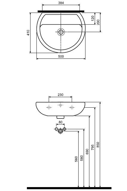 Umývadlo Kolo Rekord: biela , B=50cm, H=16.5cm, T=41cm, Geberit