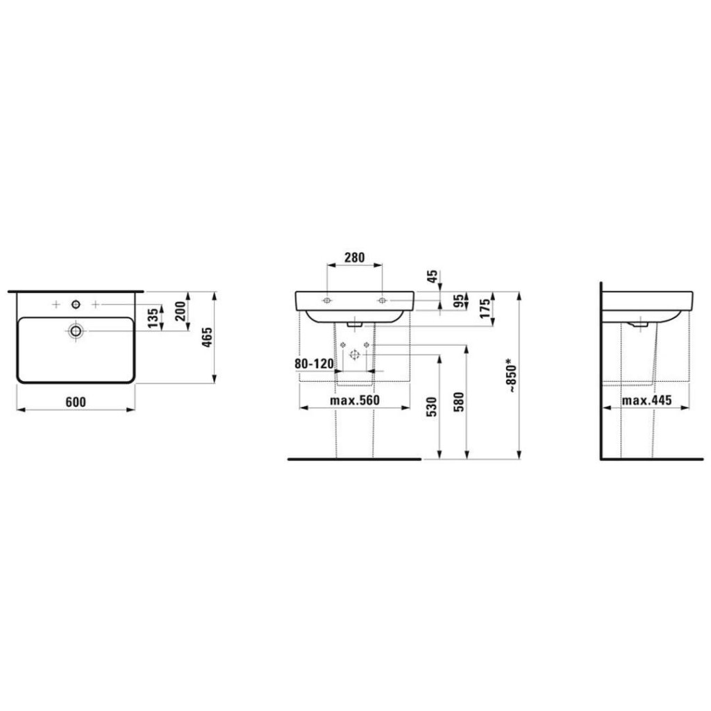 Domov Umývadlá Klasické umývadlá Umývadlo Laufen PRO S 600×465 mm, s otvorom pre batériu/bez prepadu, biela