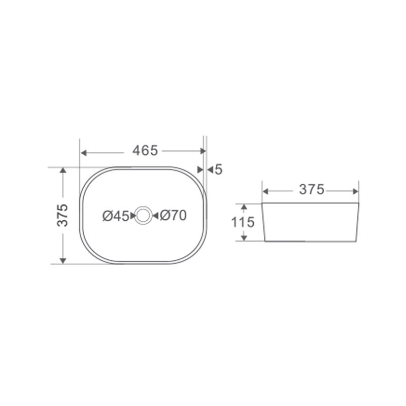 Umývadlo na dosku bez prepadu, 465x375x115 mm, okrúhle, keramické