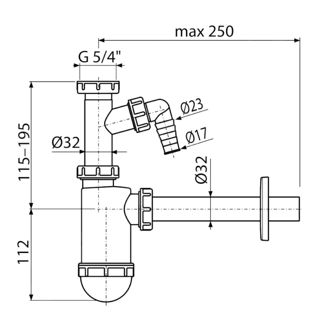 Domov Odpad Sifóny Umývadlové sifóny Umývadlový sifón O32 s prípojkou a maticou 5/4″