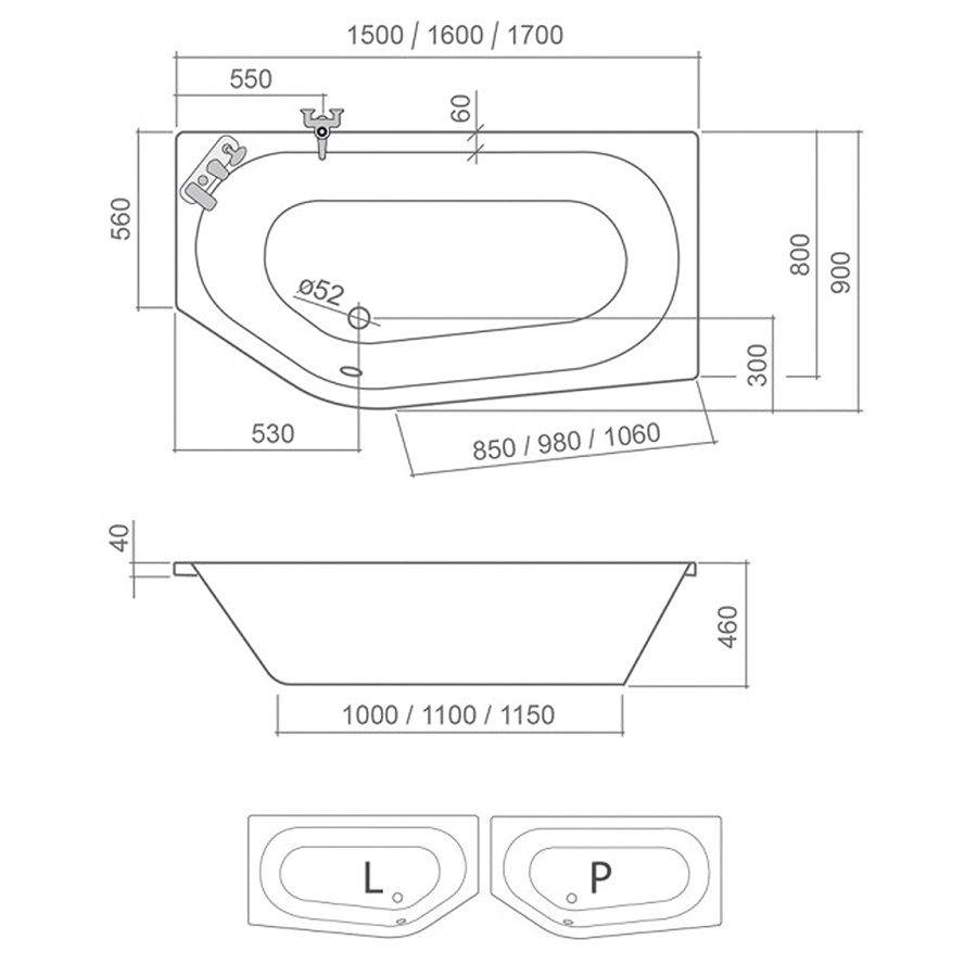 Domov Vane Asymetrické vane Vaňa ACTIVA NEO (L)- 1600×900