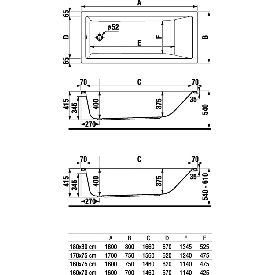 Domov Vane Obdĺžnikové vane Vaňa bez podpeir, Cubito pure, JIKA, 180×80 cm