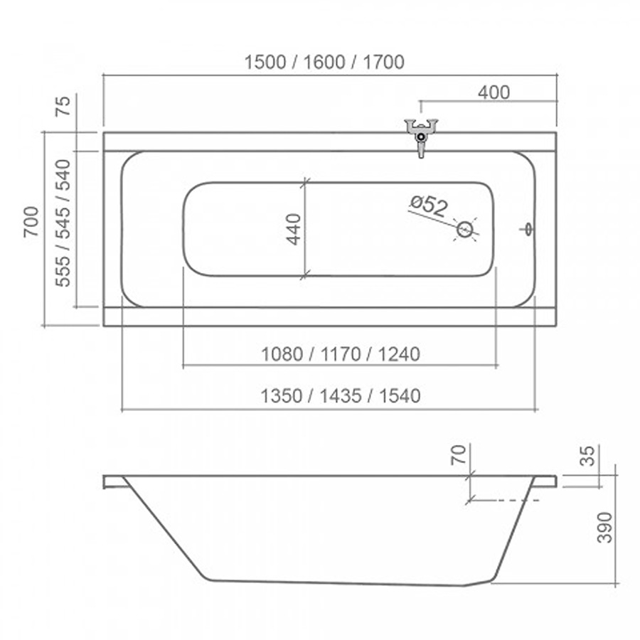 Domov Vane Obdĺžnikové vane Vaňa CLASSIC PRO 1600×700