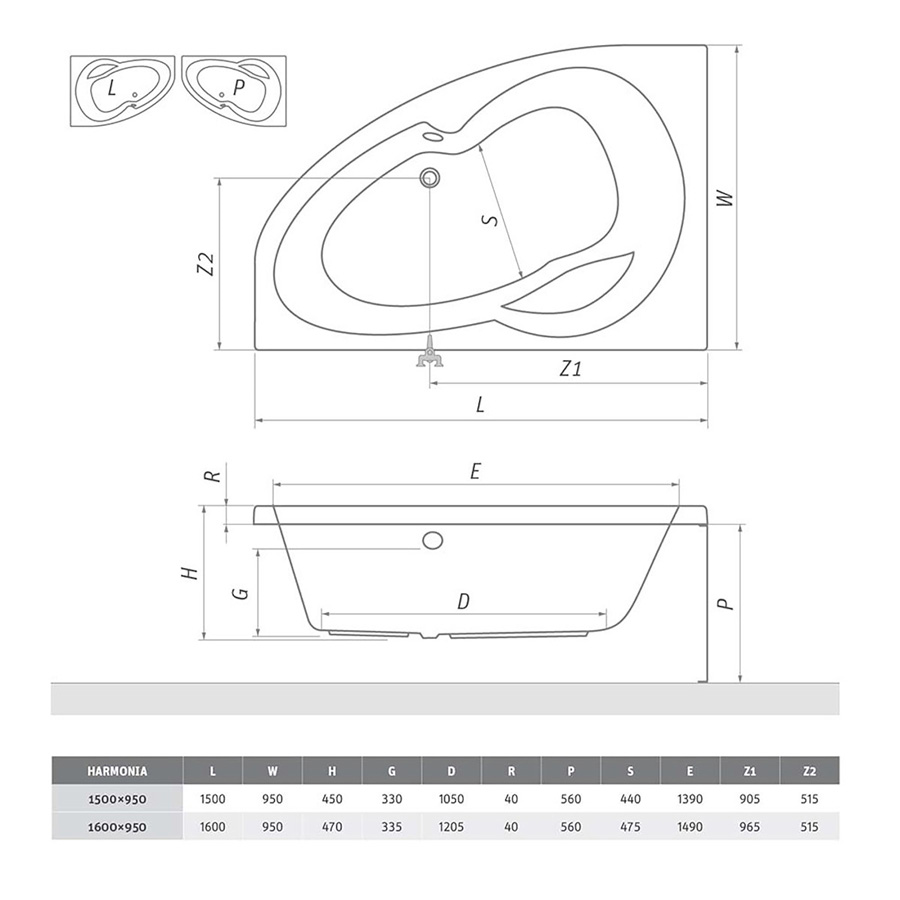 Domov Vane Asymetrické vane Vaňa HARMONIA (P)- 1500×950