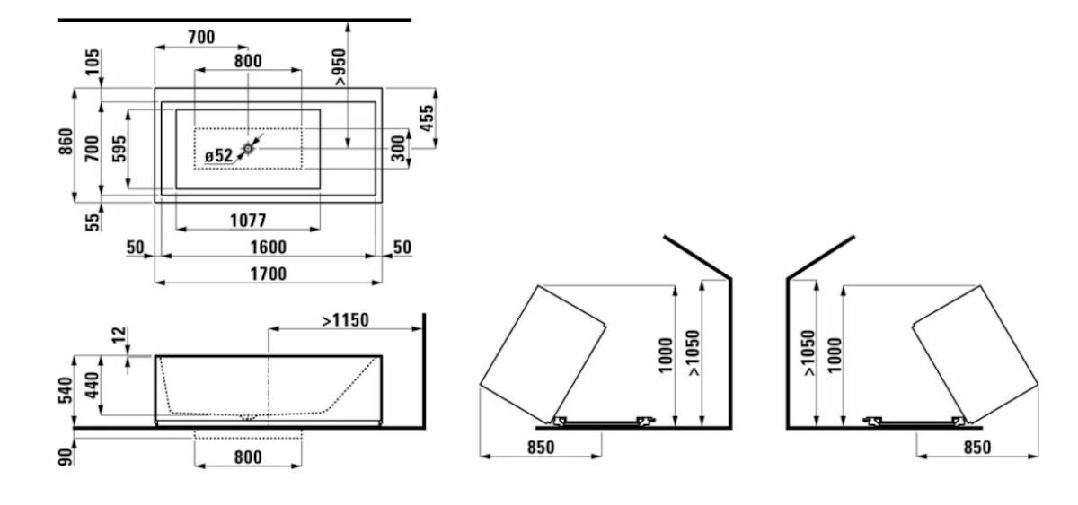 Vaňa KARTELL LAUFEN, voľne stojaca, s plochou pre armatúru, 170x86x44 cm, biela